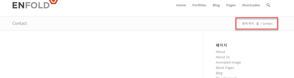 엔폴드 (Enfold)에서는 다음과 같은 스타일로 이동 경로가 표시됩니다.