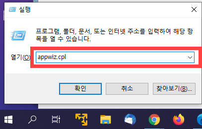 appwiz.cpl을 입력하고 "확인"을 누릅니다.