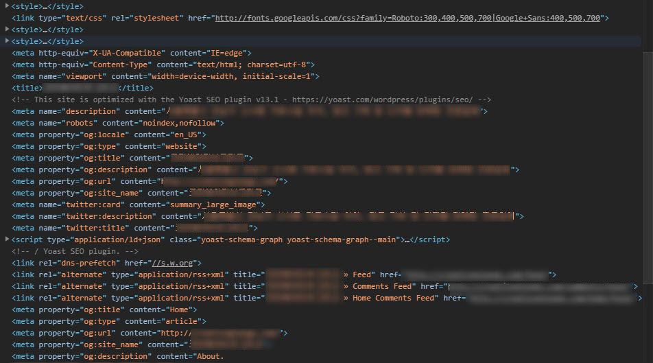 예를 들어, 아바다 테마와 Yoast SEO 플러그인이 사용된 워드프레스 사이트에서 페이지 소스를 살펴보면 다음과 같이 오픈 그래프 (open graph) 태그가 중복으로 표시되는 경우가 있습니다.