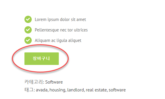 하지만 "개별 판매" 옵션을 활성화하면 상품 수량을 선택할 수 있는 옵션을 이용할 수 없게 됩니다. 다음 그림과 같이 '장바구니' 버튼만 표시됩니다.