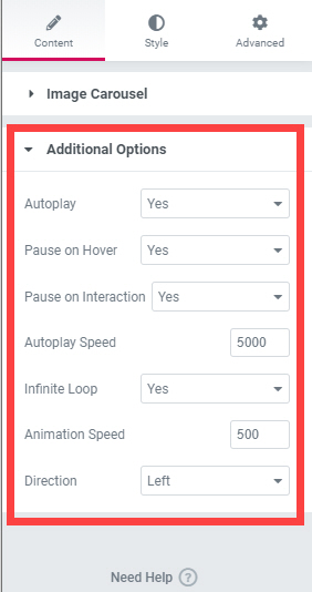 그리고 Additional Options (추가 옵션)에서 자동재생, 허버 시 일지 정지 기능, 자동재생 속도, 무한 회전, 회전 방향(왼쪽 또는 오른쪽) 등 추가 옵션을 지정할 수 있습니다.