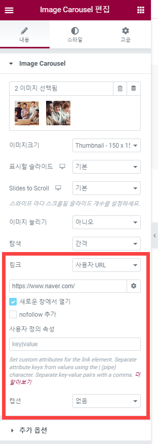 2022년 7월 추가: 엘리멘터 이미지 캐러셀의 개별 이미지에 링크 설정하기