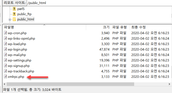 다른 방법으로 FTP에 접속하여 xmlrpc.php 파일을 삭제하는 것도 가능합니다.