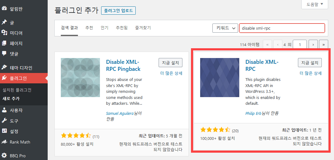 이외에도 iThemes Security와 같은 보안 플러그인에서 XML-RPC 비활성화 기능을 제공합니다. 보안 플러그인을 사용하면 이 기능이 있는지 체크해보시기 바랍니다.
