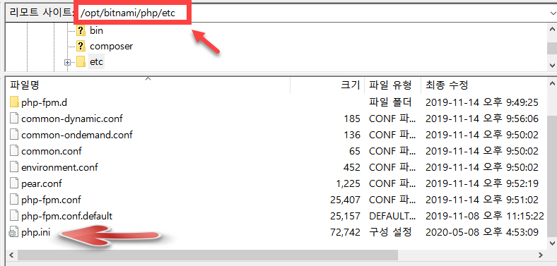 아마존 라이트세일에서 제공되는 워드프레스 설치본을 사용하여 워드프레스를 설치한 경우 /opt/bitnami/php/etc 폴더 아래에 php.ini 파일이 있습니다.