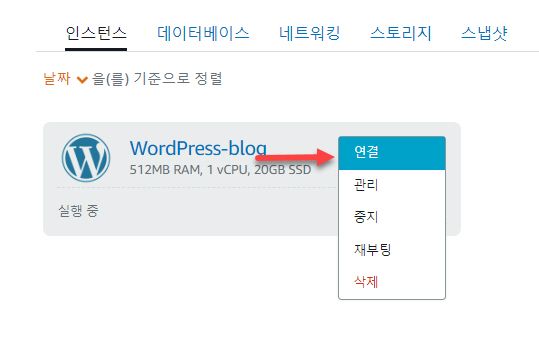 재부팅하려면 워드프레스 인스턴스의 오른쪽 상단에 있는 점 3개 아이콘을 클릭하고 "재부팅"을 클릭하면 됩니다.