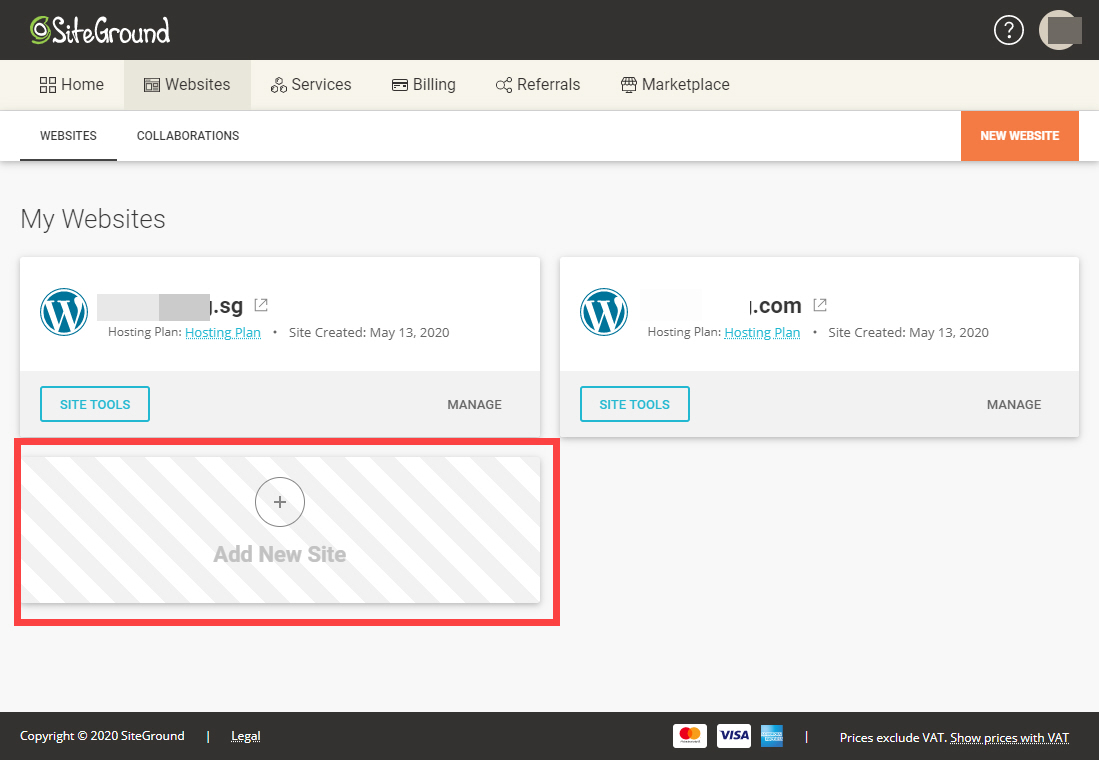 해외 호스팅 사이트그라운드의 새 인터페이스에서 새 사이트를 추가하는 방법