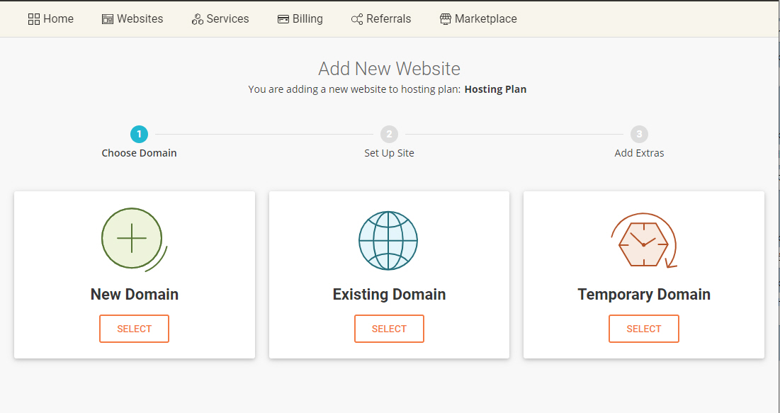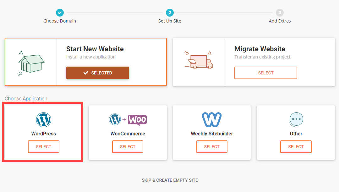 새 웹사이트를 시작할 것인지, 아니면 웹 사이트를 마이그레이션할 것인지 선택하는 화면이 표시됩니다.