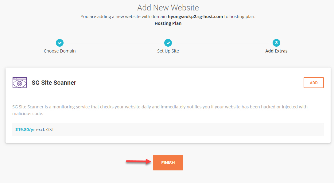 SG Site Scanner를 선택할 수 있는 페이지가 표시됩니다. 연간 19.80달러로 사이트를 매일 모니터링하여 사이트가 해킹당하거나 악성코드에 감염되는 경우 즉시 알림을 받을 수 있습니다.