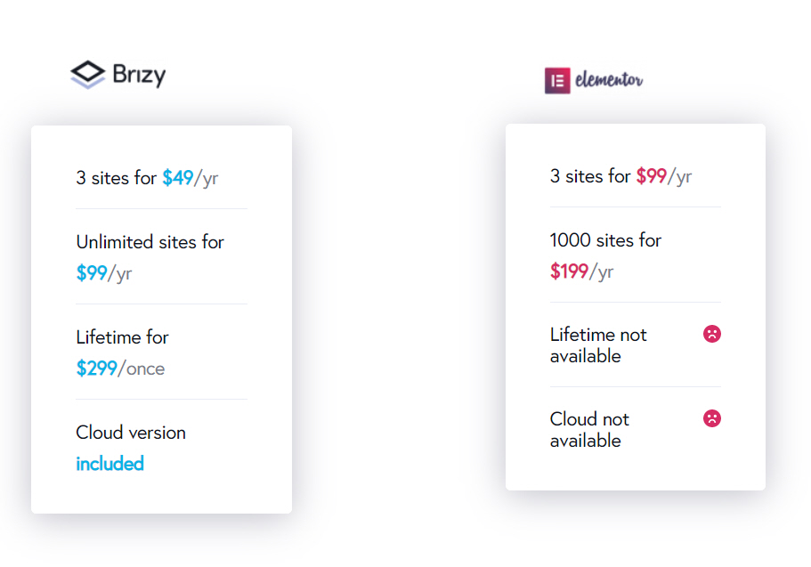 Brizy는 연간 요금제뿐만 아니라 평생 요금제도 제공하고 있고 가격도 비교적 저렴한 편입니다.