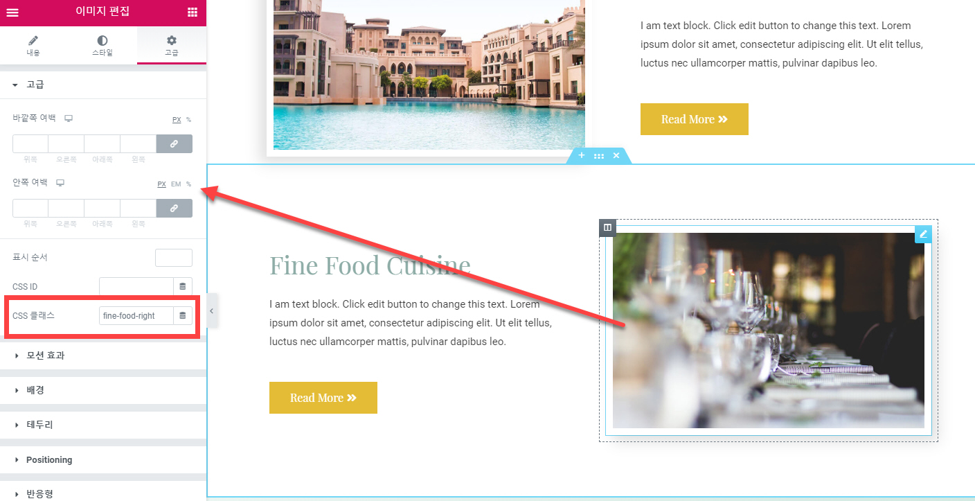 이런 경우 CSS 클래스를 지정하여 CSS를 통해 제어할 수 있습니다. CSS 클래스에 적절한 CSS 클래스를 지정합니다. 그런 다음 테마 디자인 > 사용자 정의하기 > 추가 CSS로 이동하여 다음과 비슷한 코드를 넣도록 합니다.