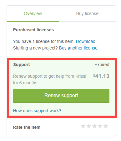 지원이 종료되기 전에 지원을 6개월 연장할 수 있습니다. 만료된 이후에도 지원을 갱신할 수 있습니다. 하지만 비용이 테마 판매 가격의 70%에 해당합니다.ㅠ