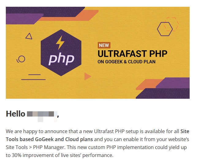 며칠 전에 사이트그라운드로부터 모든 Site Tools 기반의 GoGeek과 클라우드 (Cloud) 플랜에 대하여 새로운 Ultrfast PHP 셋업을 사용할 수 있다고 안내하는 메일을 받았습니다.