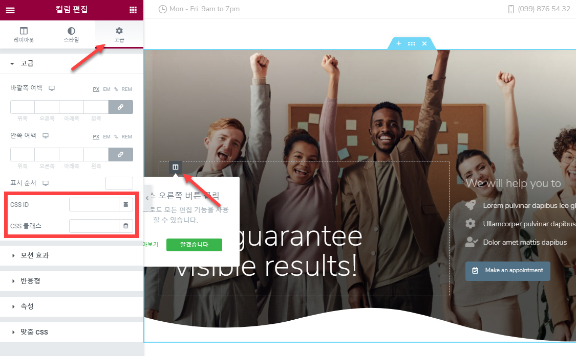엘리멘터 페이지 빌더에서 CSS 클래스/ID 지정하기