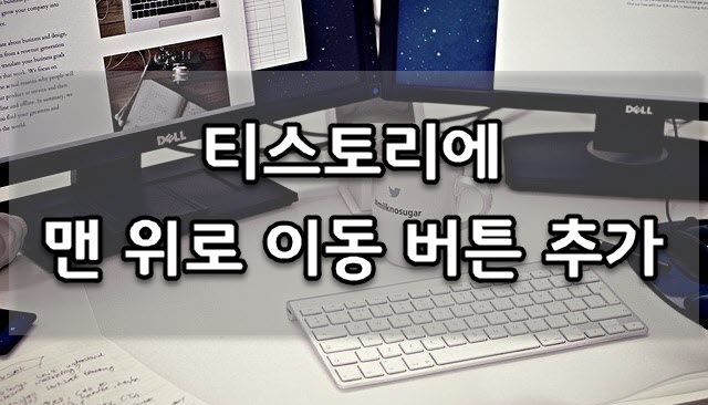 워드프레스의 경우 테마에서 이 기능을 제공하는 경우가 많고, 플러그인을 설치하는 것도 가능합니다. 티스토리에서는 이 기능을 제공하는 스킨이 있으면 스킨에서 제공하는 기능을 사용하면 되고, 없다면 구글링하여 마음에 드는 방법으로 '맨 위로 이동하기' 아이콘을 추가할 수 있습니다.