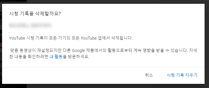 그러면 '시청 기록을 삭제할까요?' 팝업이 표시됩니다.