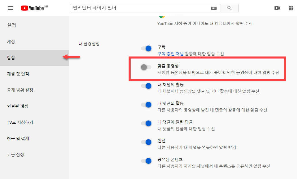 유튜브 맞춤 동영상 표시되지 않도록 설정하기