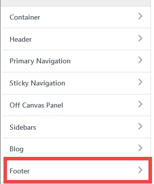 그러면 레이아웃을 제어할 수 있는 메뉴가 표시됩니다. Footer(푸터)를 클릭합니다.