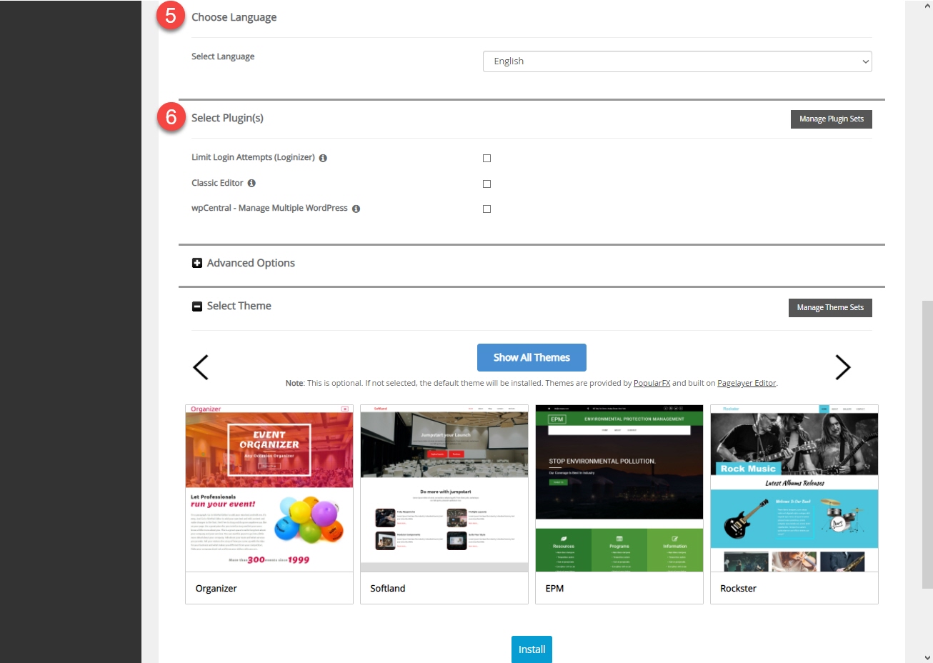 Select Plugin(s)(⑥)에서는 함께 설치할 플러그인을 선택할 수 있습니다. Limit Login Attempts (Loginizer)는 로그인 시도 횟수를 제한하여 보안을 강화하는 플러그인입니다. 이 플러그인은 설치해도 좋을 듯합니다. 나머지는 설치할 필요가 없을 것 같습니다.