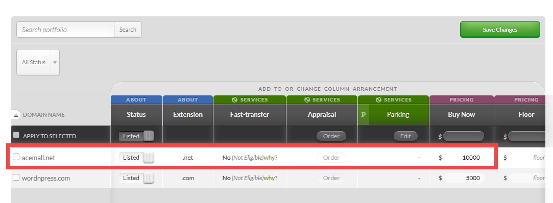 저는 acemall.net이라는 도메인의 즉시 구입가를 1만 달러로 설정해보았습니다. (다시 12000달러로 올렸습니다.ㅎ)