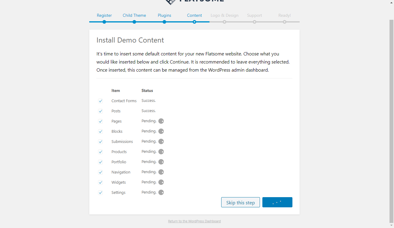 다음은 Flatsome 테마의 데모 설치 방법입니다.