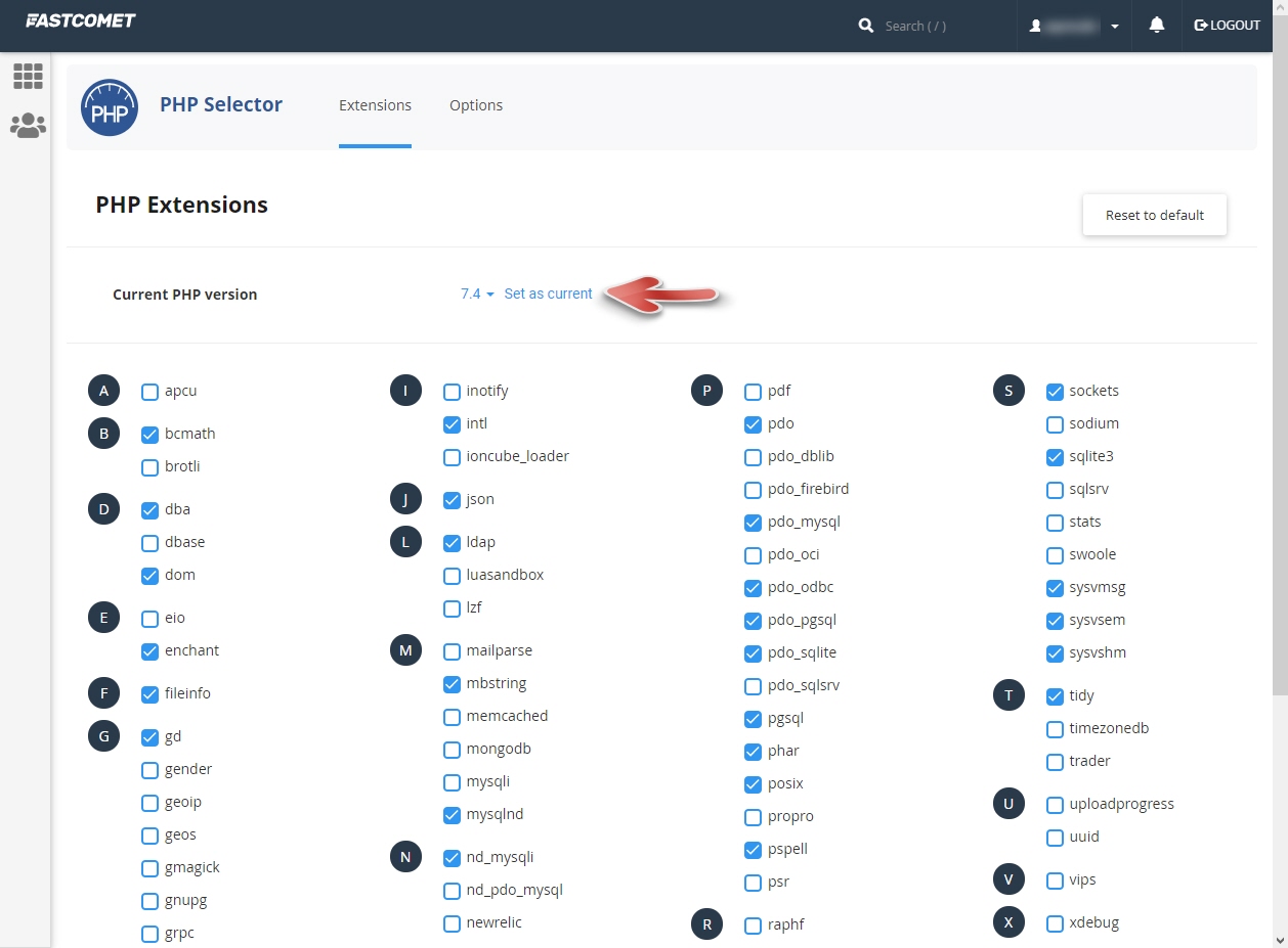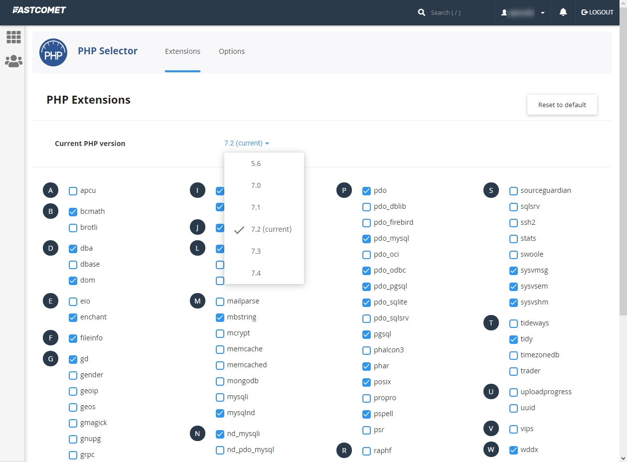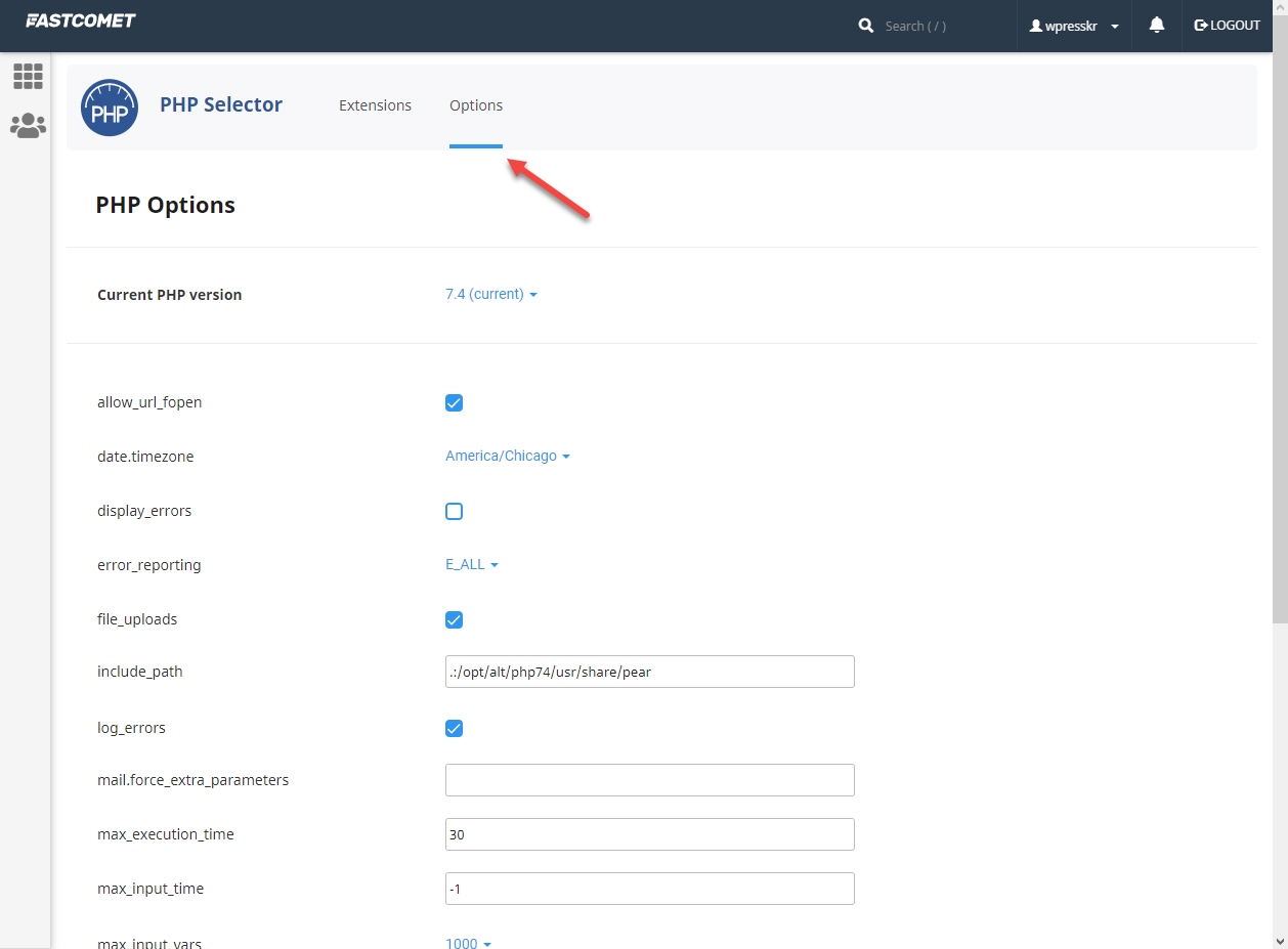 FastComet에서는 cPanel을 제공하기 때문에 cPanel에 로그인하여 PHP 버전을 변경할 수 있고 PHP ini 설정값을 지정할 수 있습니다.