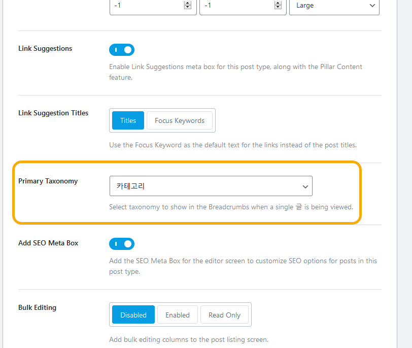 Primary Taxonomy를 카테고리로 설정합니다.