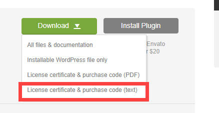 Purchase Code는 테마 다운로드 페이지에서 이 테마 오른쪽에 있는 Download 버튼을 클릭하고 License certificate & purchase code를 클릭하여 확인할 수 있습니다.