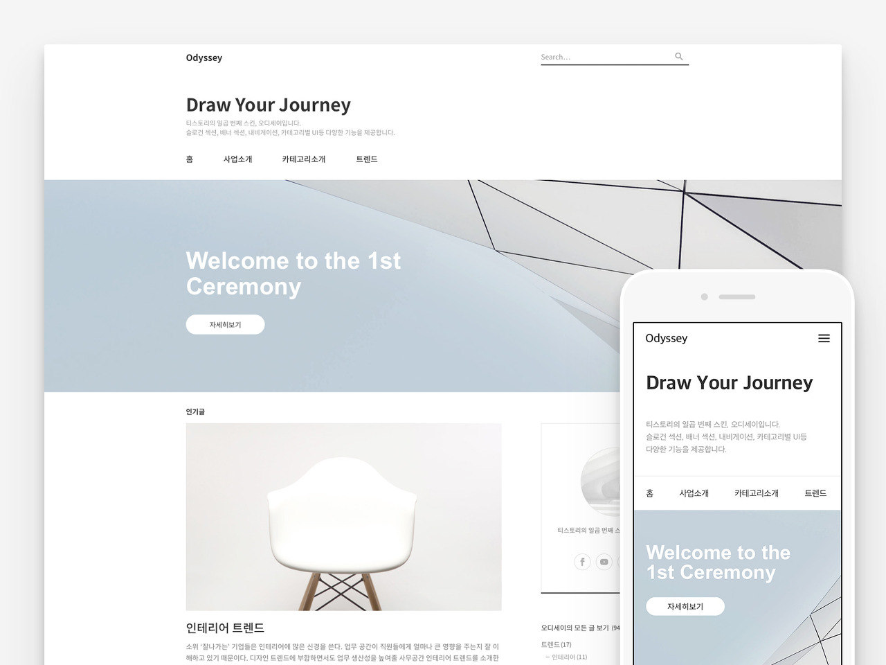 오디세이 (Odyssey)는 살펴보니 작년 9월에 공개된 스킨이네요. 티스토리에서 공개한 스킨 중에서 가장 최신 스킨이라 할 수 있습니다.