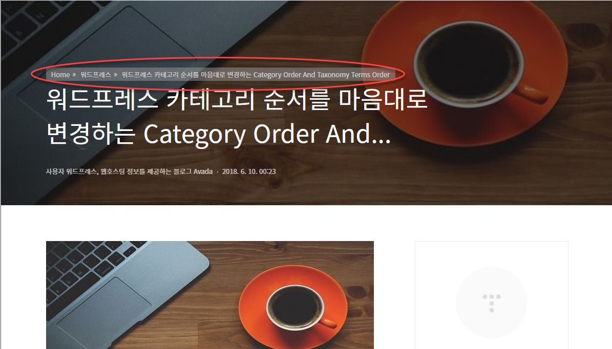 위의 코드 부분에서 카테고리 표시 부분을 브레드크럼으로 바꾸어보도록 하겠습니다. 위의 코드 부분을 아래의 코드로 대체하시기 바랍니다.