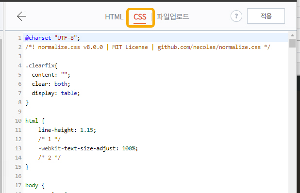 맨 아래에 다음 CSS 코드를 추가합니다.