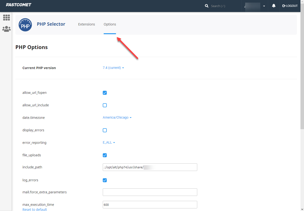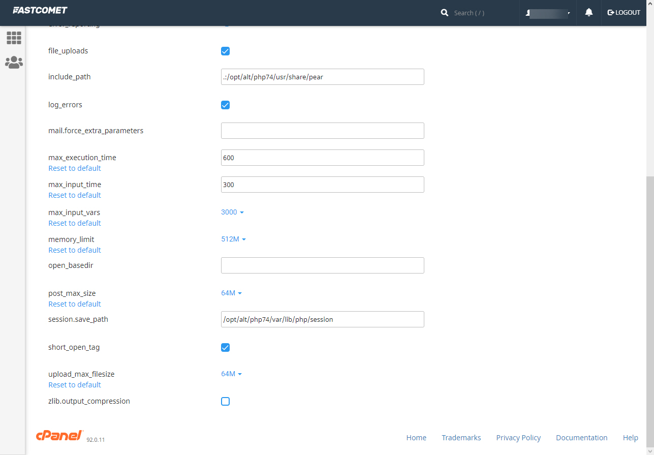 해외 웹호스팅 중 하나인 FastComet의 경우 cPanel 내의 Select PHP Version 툴에서 서버 환경값을 조정할 수 있습니다.