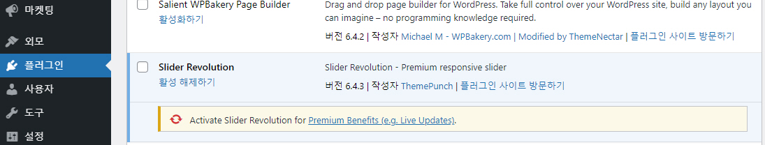 유료 테마에 포함된 슬라이더 레볼루션 플러그인의 업데이트