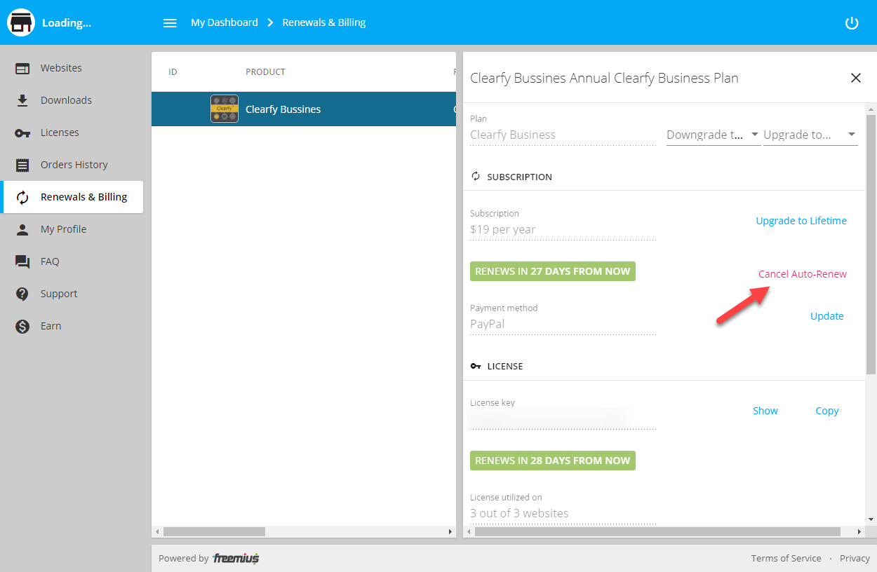 그러면 아래와 같은 화면이 표시됩니다. Canel Auto-Renew를 클릭합니다.