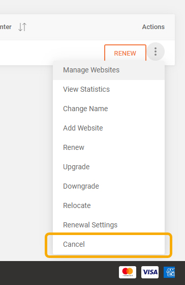 Services > Hosting 페이지를 방문하면 호스팅 플랜 상태가 Cancelled로 표시됩니다. 원하는 경우 만료 전에 Renew를 눌러 서비스를 갱신할 수 있습니다.