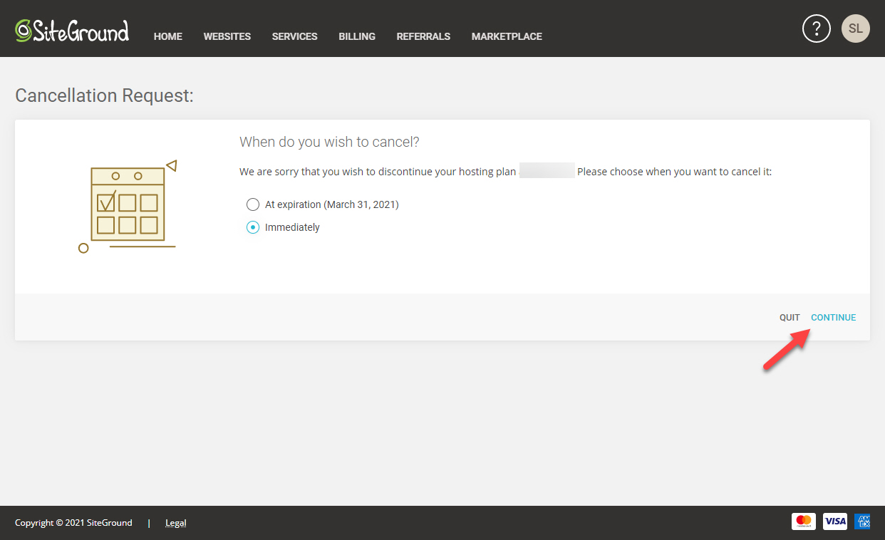 사이트그라운드 서비스를 더 이상 이용하지 않을 경우 만료되기 전에 서비스를 취소할 수 있습니다.