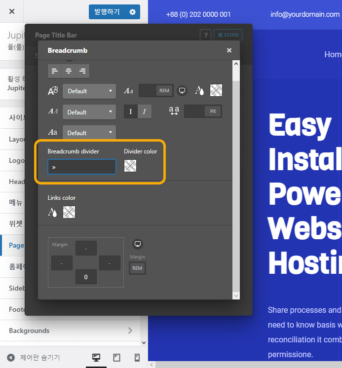 이상으로 Jupiter 테마에서 브레드크럼 내 항목을 구분하는 분리 기호 스타일을 변경하는 방법에 대해 살펴보았습니다.