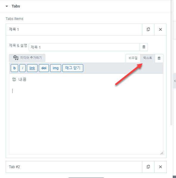 엘리멘터 페이지 빌더의 탭 (Tabs) 기능