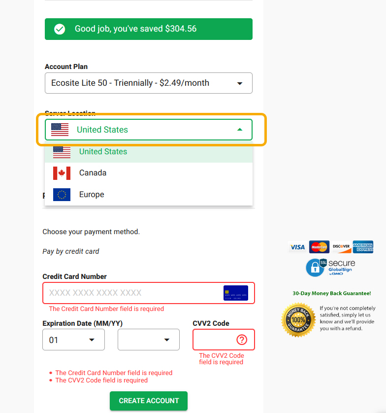참고로 GreenGeeks에서는 신용카드와 체크카드로만 결제가 가능하고 페이팔(PayPal)로는 결제할 수 없습니다. 다른 해외 웹호스팅 서비스인 FastComet에서는 페이팔 결제가 가능합니다.