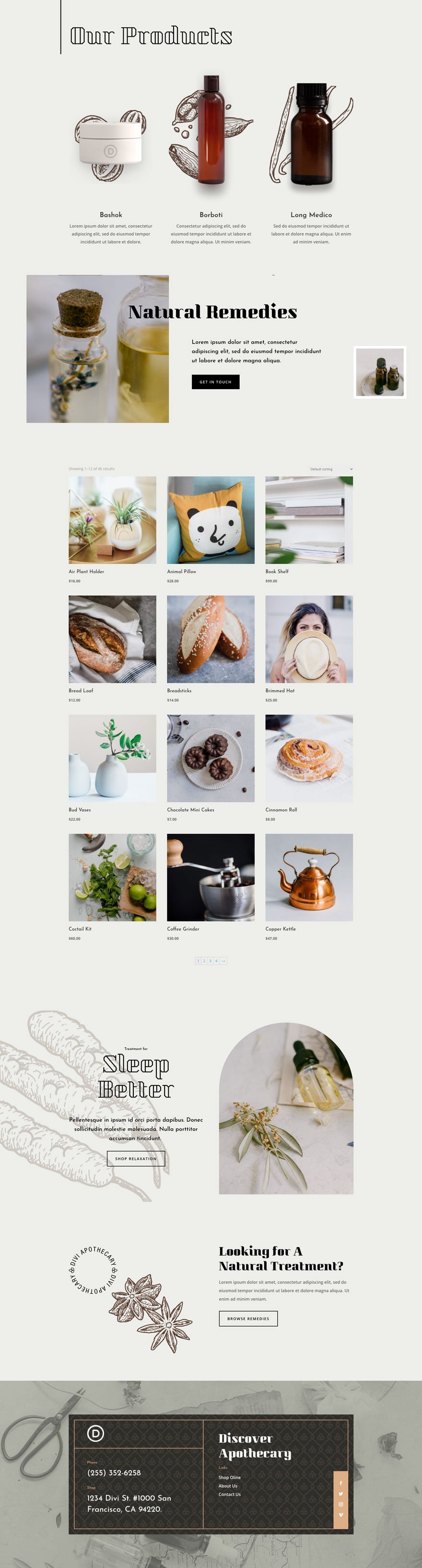 Divi 테마용 무료 레이아웃 팩 Apothecary Layout Pack