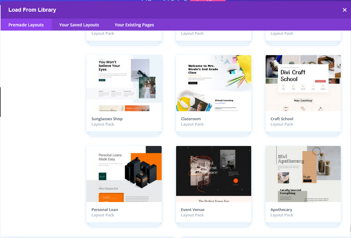 Divi 테마를 사용하는 경우 거의 매주 추가되는 레이아웃 팩을 활용하여 사이트를 만들 수 있습니다. 현재 200개가 넘는 레이아웃 팩이 추가되었으며 각 레이아웃 팩에는 6~8개의 레이아웃이 포함되어 있습니다.