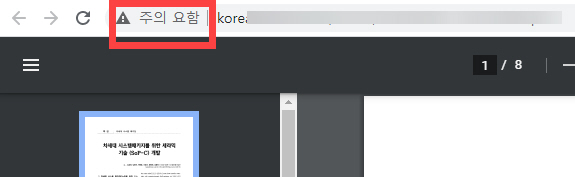 SSL 인증서를 설치하고 사이트 주소를 http://...에서 https://...로 바꾸면 '주의 요함'이 사라지고 대신 자물쇠 기호가 표시됩니다.