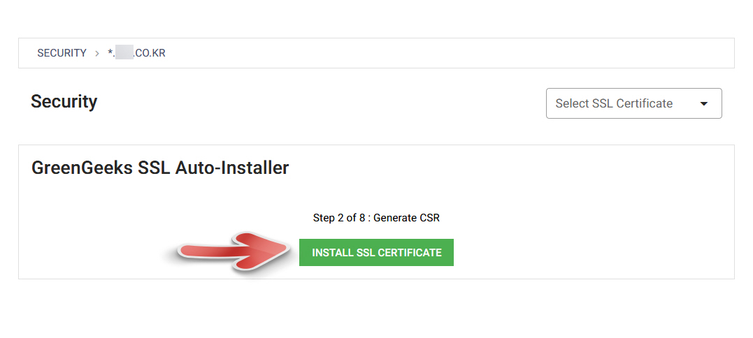 다음 화면에서 Install SSL Certificate (SSL 인증서 설치) 버튼을 클릭합니다.