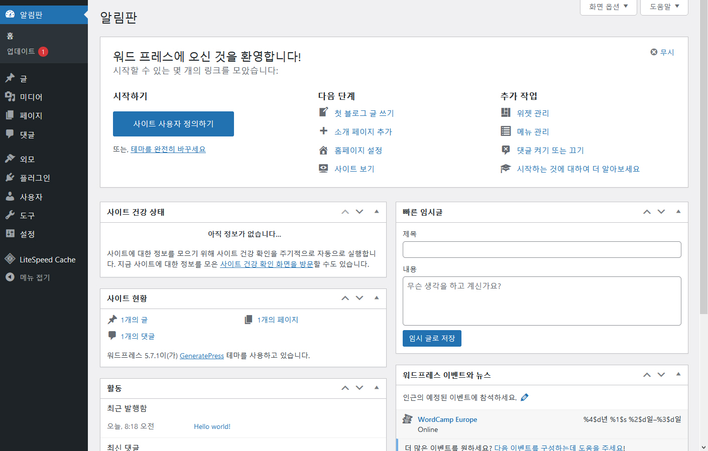 블로그 리뉴얼: GeneratePress 테마로 변경 - 워드프레스 정보꾸러미