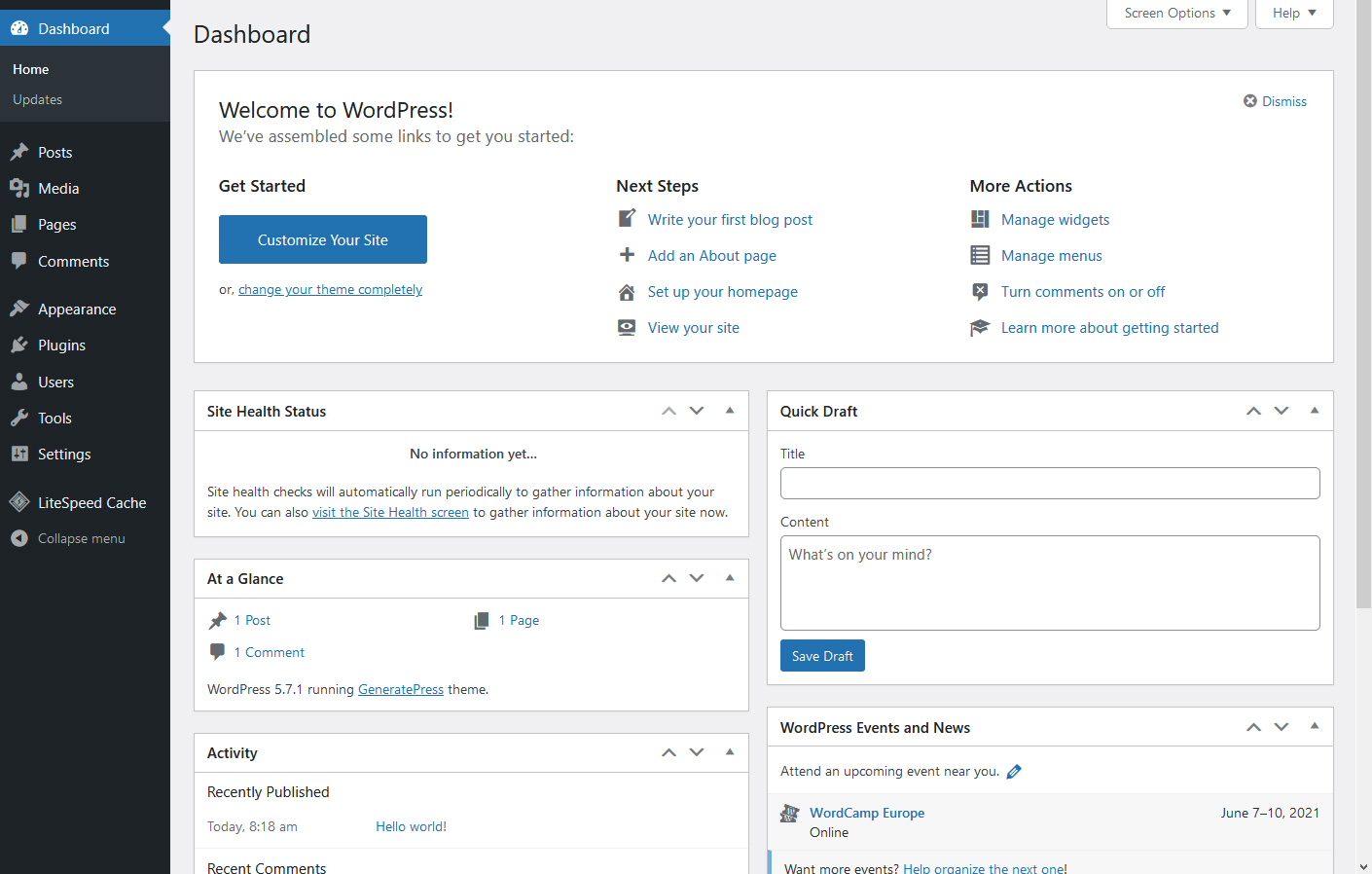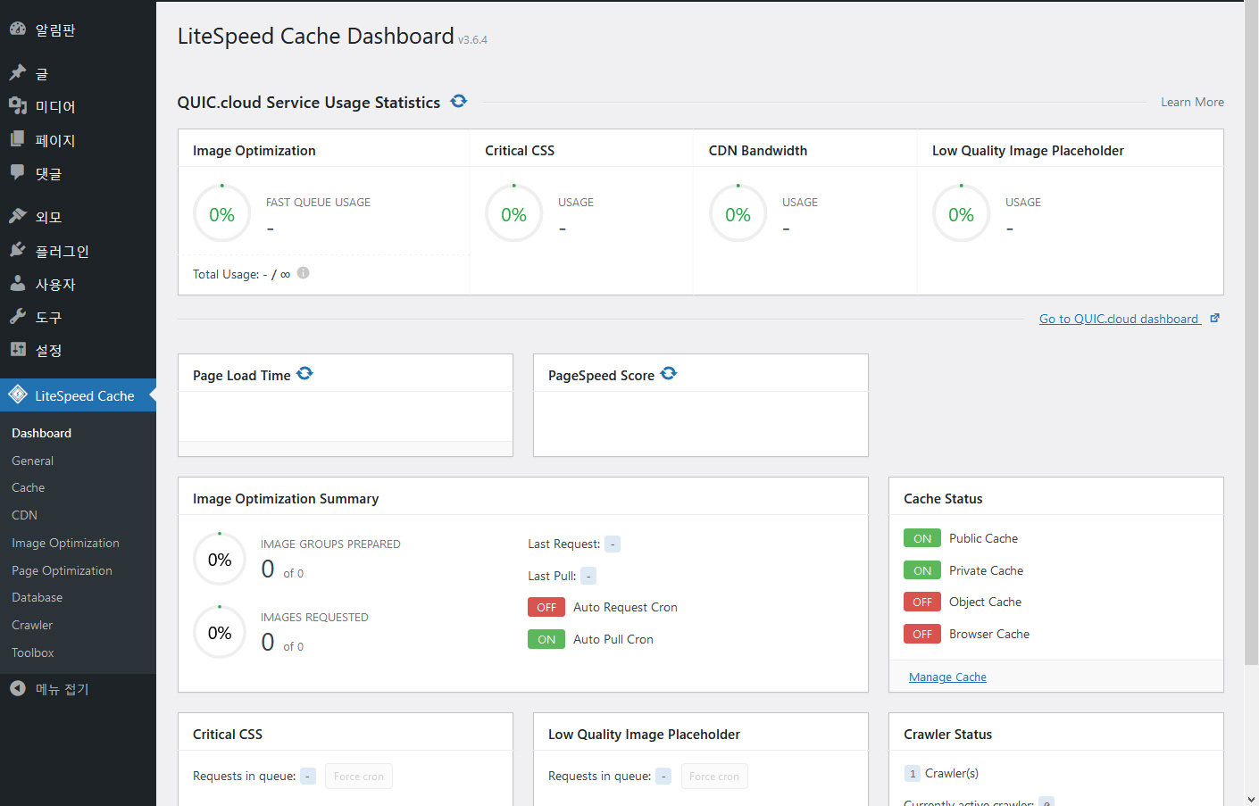 GreenGeeks에서 워드프레스를 설치하면 LiteSpeed Cache 플러그인이 기본적으로 설치되어 활성화되어 있습니다.