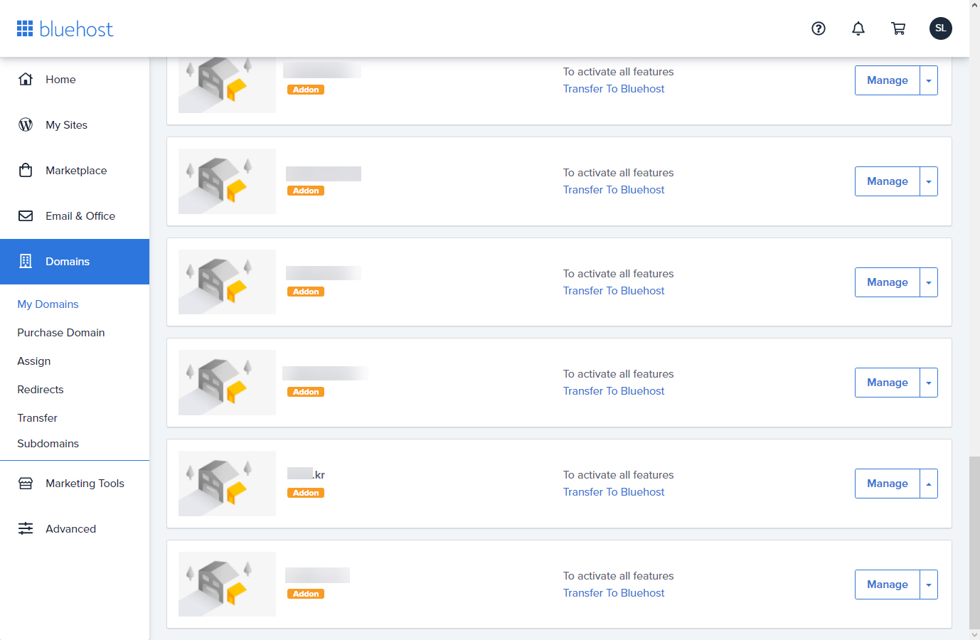 저는 Bluehost 공유호스팅과 VPS를 사용하고 있습니다. VPS에는 하나의 도메인만 연결한 상태이고 공유호스팅에는 다수의 도메인을 연결했습니다.
