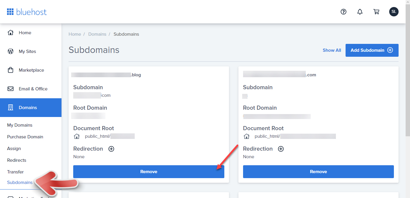 블루호스트 애드온 도메인 디렉터리 변경 방법