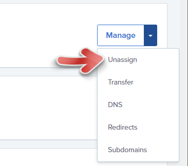 직접 변경하고 싶다면 해당 도메인의 오른쪽에 있는 Manage 옆의 역화살표를 클릭하고 Unassign 메뉴를 클릭하여 도메인의 할당(Assignment)을 해제한 후에 다시 할당하면 됩니다.