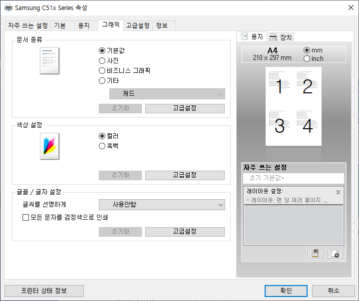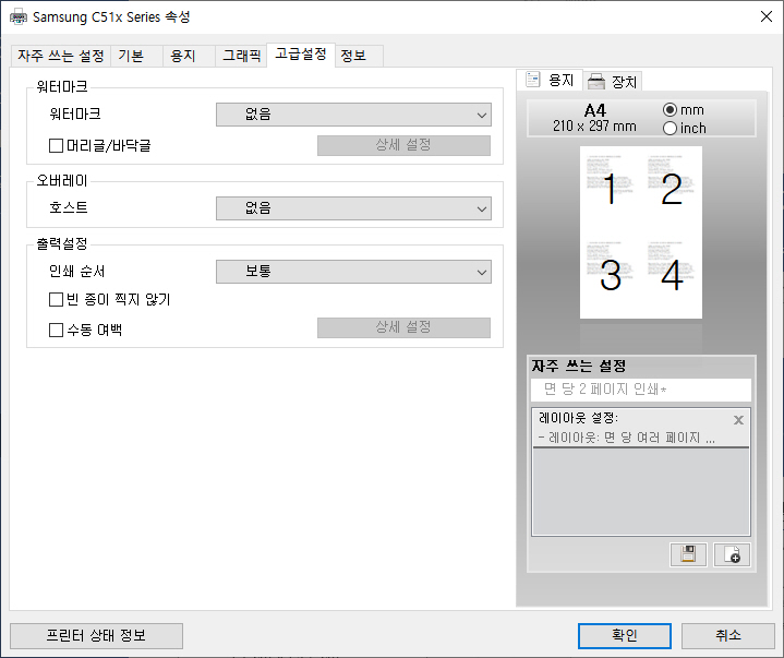 삼성에서 제공하는 전용 프린터 드라이버를 설치하면 인쇄 시 보다 상세한 설정이 가능합니다.