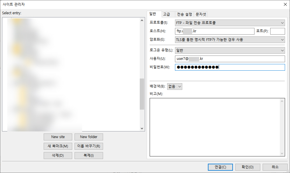 - Password: FTP 비밀번호